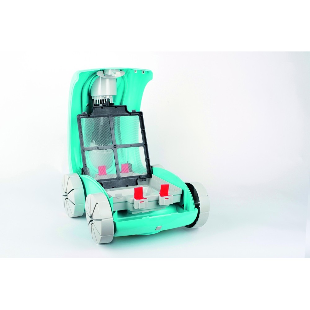 Recupera las impurezas en su filtro propio, el cual se limpia después de varios usos con la manguera del jardín. Con el robot eléctrico Solar Clean por consiguiente se pone fin a la engorrosa tarea de limpieza de la piscina.