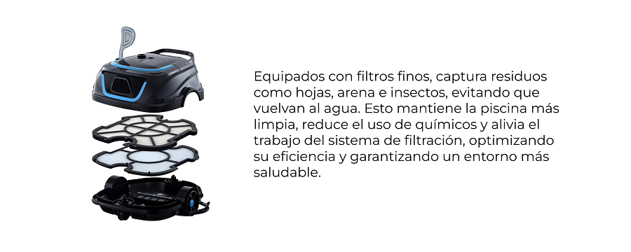 ^Para garantizar el buen funcionamiento del aparato se requerirá de un nivel de pH correcto, que no tenga algas o restos de babilla que llene el filtro del equipo. Deberá hacerse una limpieza de la piscina previa al uso del equipo ( especialmente si la piscina está muy sucia ). La limpieza de escalones y cantos de esquinas redondeados no se puede garantizar^.
