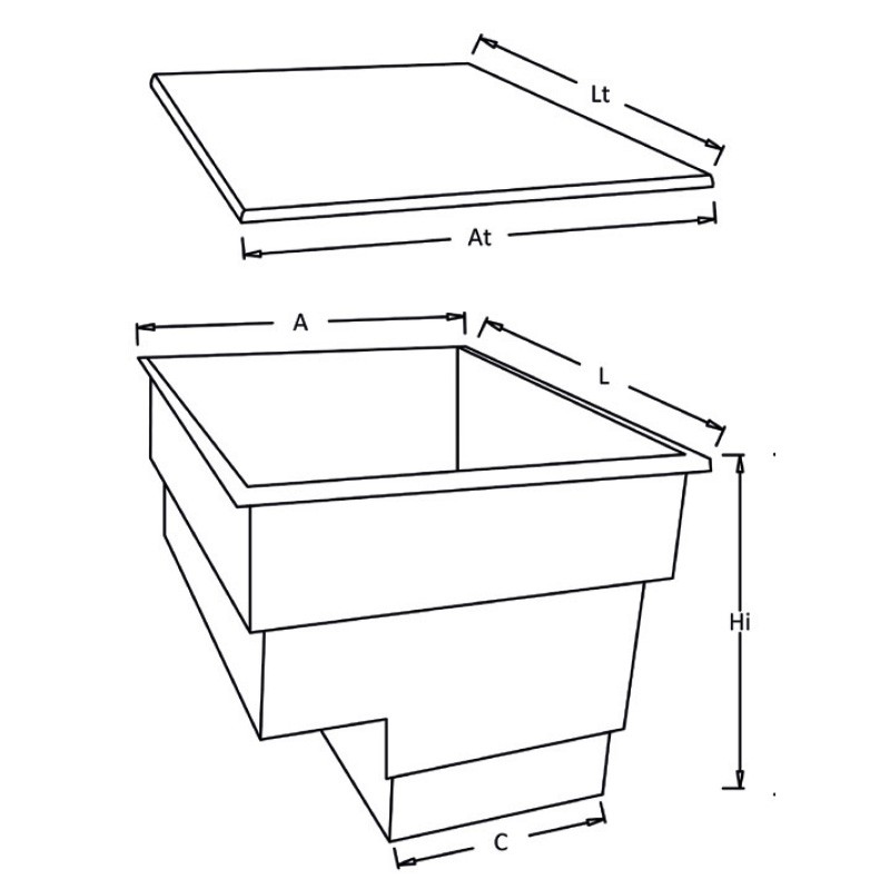 Medidas exteriores local técnico inyectado enterrado de 600mm :