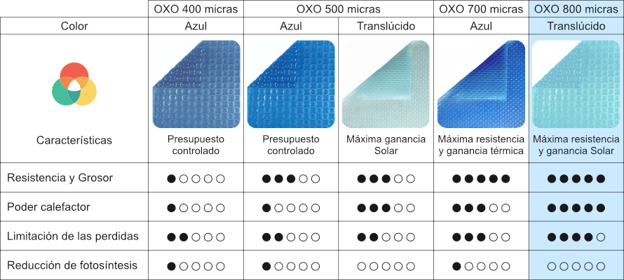 Manta térmica OXO PLUS de 800 micras solar/translúcida estándar: