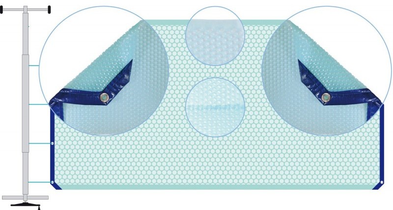 La manta térmica Geobubble Plata es ideal por su naturaleza opaca que evita el desarrollo de algas pero que a su vez permite la captación y retención de las calorías de los rayos U.V.