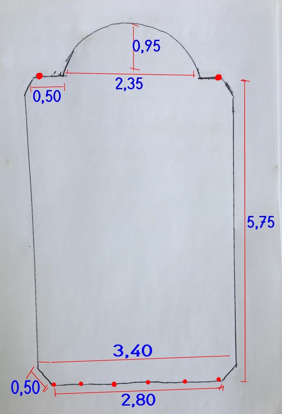 - (6) ojales en el lateral indicado y (2) ojales en el ancho contrario (indicados en el croquis)
