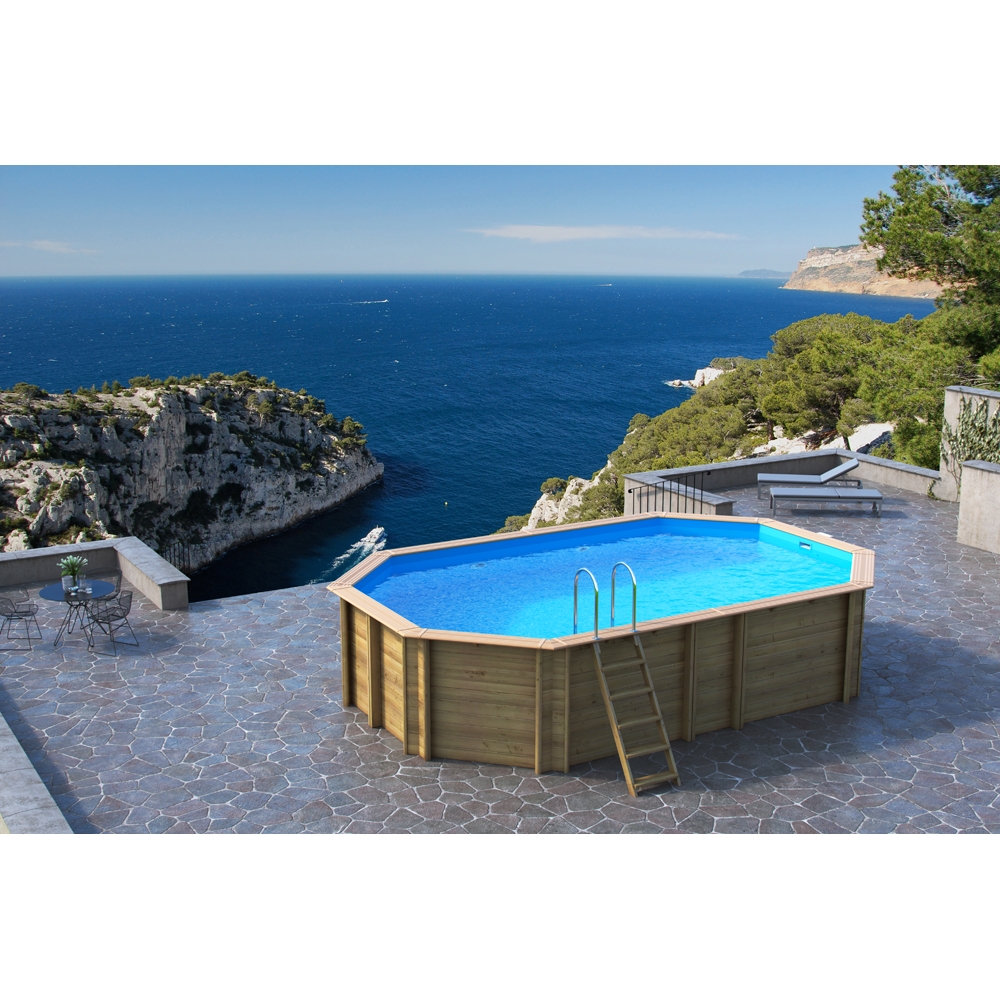 La piscina octogonal alargada Odyssea Octo+ 6,44 al igual que todas la piscinas de madera de la gama Odyssea, es una piscina muy estética que le permitirá disfrutar de agradables momentos de baño en su jardín. La gama Odyssea representa todo el “saber hacer” de un fabricante de prestigio Francés y disfrutara de una piscina de madera de calidad con un equipamiento completo. Según su deseo podrá embellecer su jardín con esta piscina de madera personalizada