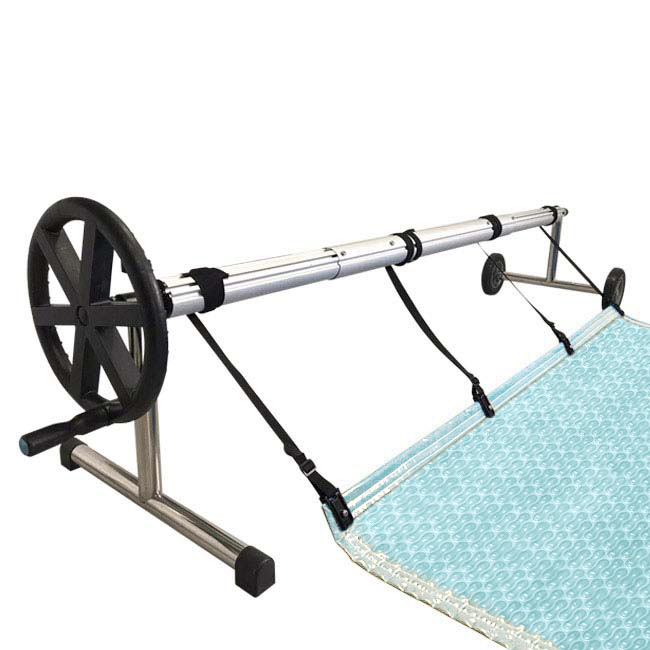 3. Enrollador Basic telescópico (4,00 m a 5,50 m), fabricado con tubos de acero inoxidable 316L (acero náutico), altamente resistente a la corrosión y especialmente indicado para piscinas con cloración salina. Un enrollador robusto, fiable y totalmente equipado.