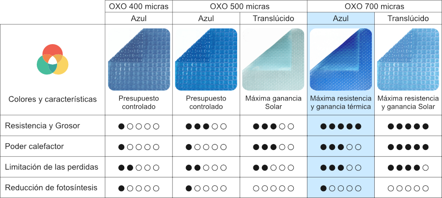 Tabla comparativa de la gama OXO: