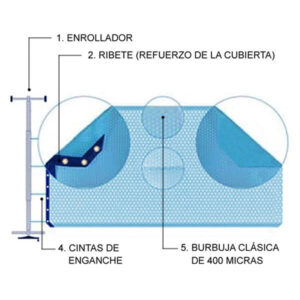 El vídeo es ilustrativo para ver el montaje del enrollador y la colocación de la manta térmica. La manta del vídeo es una Geobubble Sol+Guard solar de 500 micras. (En el vídeo se ve el cubre enrollador de PVC el cual no está incluido de serie en el Pack de este anuncio).