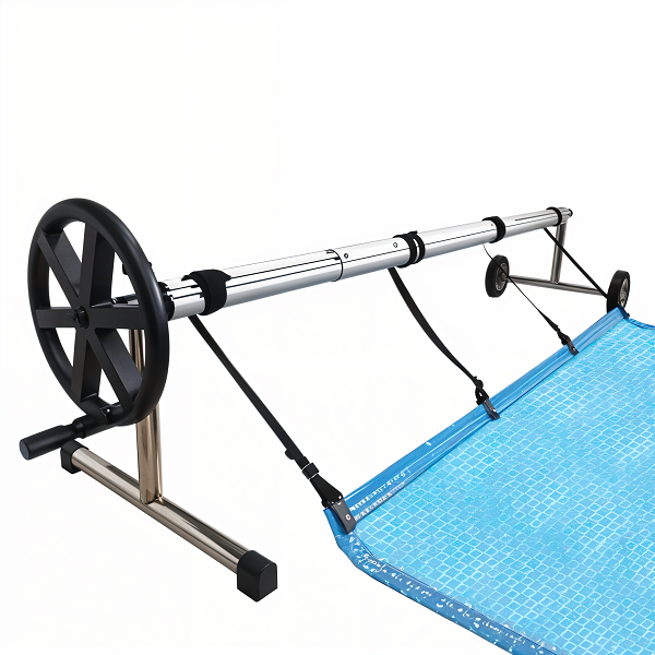 Enrollador Basic de 4,00m a 5,50m ( telescópico ). Los soportes del enrollador basic están fabricados en acero 316L ( acero náutico ) perfecto para evitar la oxidación. Este enrollador es especialmente bueno para todas las piscinas, incluidas las que son tratadas con cloración salina ( tratamiento con sal ). El enrollador incluye las cintas con pinzas, el volante y el bulón de freno de carrera ( enrollador robusto, de calidad y totalmente equipado ).