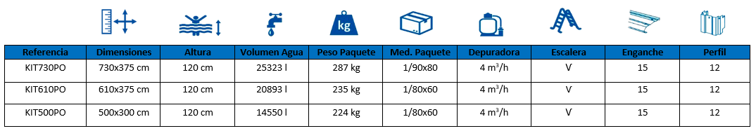 La piscina Cerdeña ovalada incorpora una escalera de 3 x 3 peldaños de PVC reforzado de seguridad con podium superior (impide el acceso a los menores dando la opción de retirar los peldaños de la parte exterior de la piscina). Este modelo también incluye un sistema de depuración compacto y completo por filtro de arena (4m3/h) y bomba autocebante de filtración. Dispone de todas las tuberías, conexiones y carga filtrante de arena de silicio.
