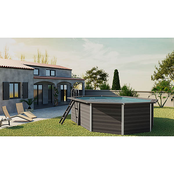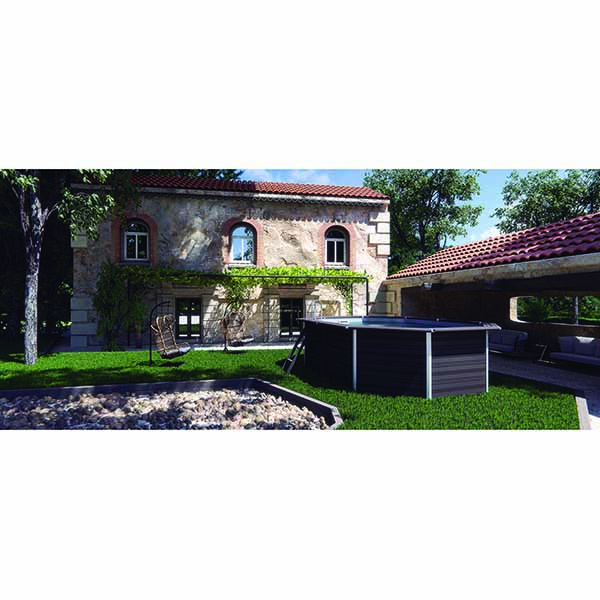 La piscina composite ovalada 8,04m x 3,86m x 1,24m de altura pertenece a la serie de piscinas Avantgarde de la marca GRE. Es ideal por su amplio tamaño y se adapta a cualquier jardín. Incluye todos los componentes de serie para su funcionamiento (Estructura panelada y premontada, liner interior de PVC, tapiz de suelo, filtro de arena y bomba con arena, tuberías, skimer, impuslor, embellecedores, escaleras y coronación superior). La estructura y los elementos del modelo ovalado de 6,64m x 3,86m son robustos y muy duraderos, dejándose montada la piscina en agua todo el año en el jardín exterior. Son muy resistentes al paso del tiempo y a los agentes climatológicos y sus materiales están fabricados con las mejores calidades.