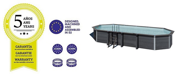 Todas las piscinas de composite elevadas de la serie Avantgarde incluyen 5 años de garantía oficial otorgados por la marca GRE. Estas piscinas están diseñadas, fabricadas y ensambladas en la Unión Europea.