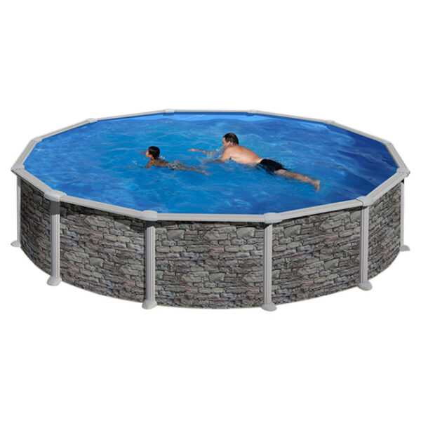 La piscina Córcega circular está disponible en 3 diferentes tamaños: 3,50m. 4,60m. 5,50m de diámetro. Es ideal para su colocación en cualquier espacio exterior y no requiere de losa de hormigón para su instalación. El modelo Córcega circular pertenece a la gama de piscinas de acero elevadas Dream Pool con imitación piedra de GRE. Incluye todos los elementos necesarios para su óptimo funcionamiento. Dispone de toda la perfilería de acero vertical así como los protectores de PVC inyectados tanto en el https://www.piscinasathena.com/wp-content/uploads/2016/05/Piscinas-sin-obra-precios-1.jpg superior como en la base.