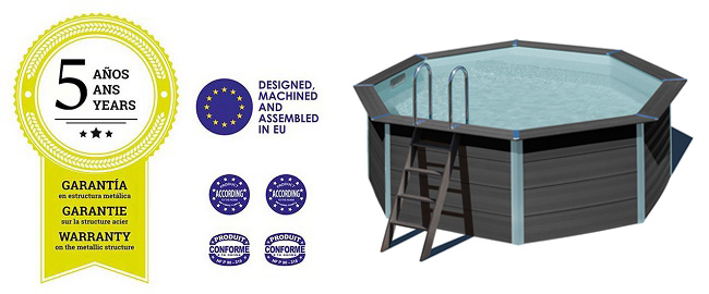 Todas las piscinas elevadas de la serie Avantgarde de composite incluyen 5 años de garantía oficial otorgados por la marca GRE. Estas piscinas están diseñadas, fabricadas y ensambladas en la Unión Europea.