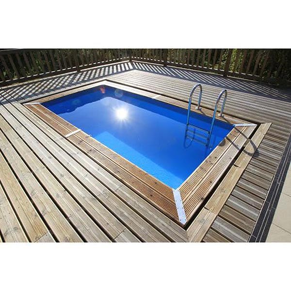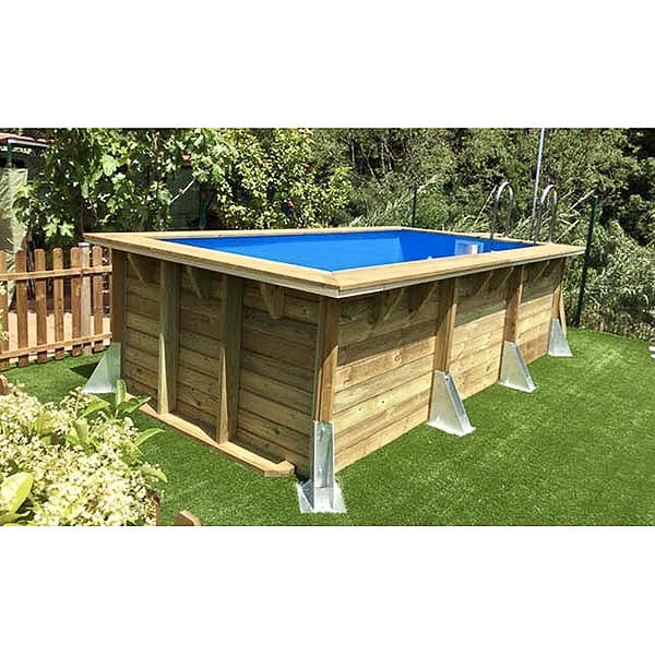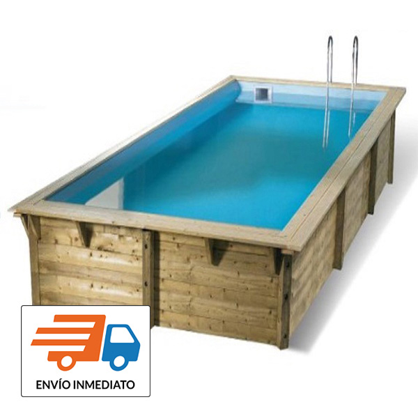 La piscina de madera 4,50m x 2,50m x 1,26m de la serie Azura rectangular dispone de una estructura de madera maciza de pino del norte. Sus listones (paredes) de 45mm de grosor hacen de este modelo una de las mejores opciones en cuanto a piscinas prefabricadas de madera tanto por su tamaño como por su adaptación al espacio exterior así como por su durabilidad y por su inmejorable relación calidad-precio. La Azura rectangular destaca además por ser una piscina muy sencilla de instalar gracias a que los maderos vienen machihembrados y se ensamblan fácilmente.