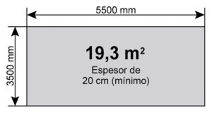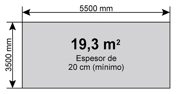 Medidas de la losa de hormigón de fondo (550cm x 350cm – grosor: 20cm)