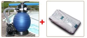 Filtro de arena de 4m3/h, bomba de 4m3/h con pre-filtro y filtro de arena con válvula selectora de 4 vías – Arena incluida.