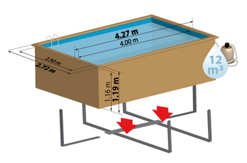 Medidas exteriores : 4,20m x 2,70m x Alt1,17m Color liner : Azul claro