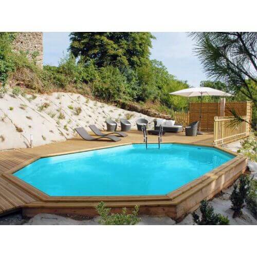 Piscina de madera Safran 2 Gre Sunbay octogonal alargada 6,20m x 3,95m x 1,36m
