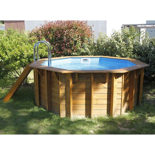 La piscina Sun 360cm de diámetro x 120cm de altura pertenece a la serie de piscinas de estructura de madera maciza y tratadas de la marca Ubbink. La Sun de 3,60m de diámetro x 1,20m de altura destaca por su aspecto robusto, por su durabilidad, practicidad y por su adaptación a todo tipo de espacios exteriores. Incluye la escalera de madera exterior tratada y la de acero interior de 3 peldaños ofreciendo mayor seguridad y comodidad a la hora de acceder y salir.