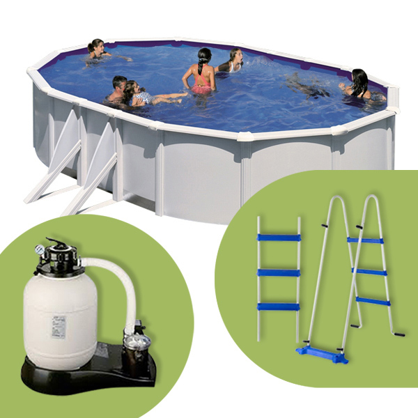 La piscina de acero Fidji ovalada con contrafuertes laterales, pertenece a la gama de piscinas de chapa de acero lacado blanco de la marca GRE. Este tipo de piscina elevada, es ideal para espacios reducidos, jardines, terrazas, etc. Cuenta con la mejor relación calidad/precio en cuanto a piscinas prefabricadas y/o desmontables.