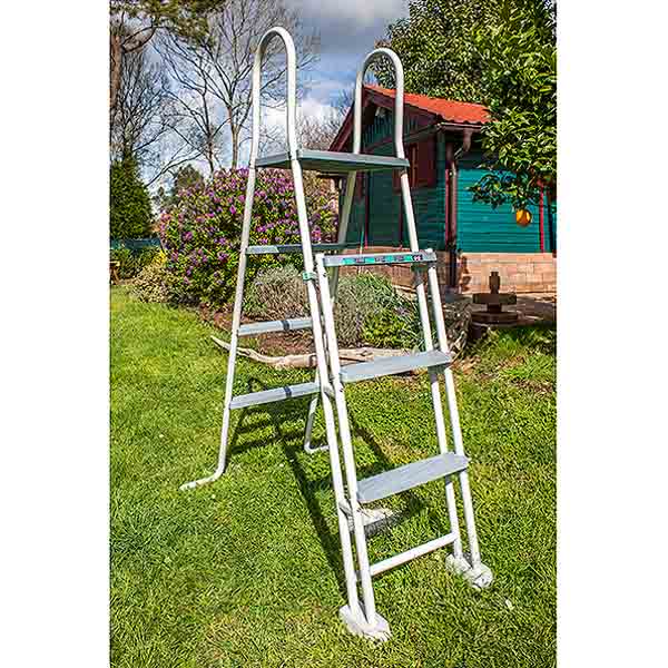El modelo Groenlandia ovalado de GRE incluye en el kit piscina la escalera de seguridad de 3 peldaños en la entrada y otros 3 peldaños en la salida con una plataforma superior (impide el acceso a los menores dando la opción de elevar los peldaños de la parte externa de la escalera). El grupo de depuración está formado por un filtro de arena de 6m3/hora con válvula selectora superior + una bomba filtrante potente y todo el sistema de tuberías flexibles con sus respectivos adaptadores de conexión.