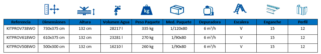La serie Mauritius ovalada cuenta con una pared/estructura (lámina de contención y perfiles de acero de unión) con imitación de madera. Dispone a su vez de un skimmer de pared completo e impulsor con rechace así como de un grupo de filtración compacto (filtro de arena + bomba + tuberías flexibles + carga filtrante de arena de silicio). También intengra en el Kit piscina una escalera de seguridad con plataforma superior.