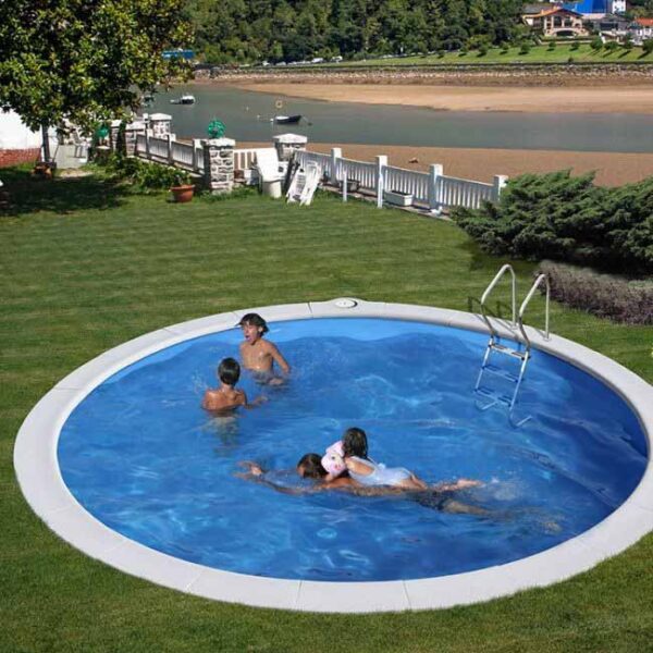 La piscina Moorea circular In-ground pool Atolón de GRE dispone de todo lo necesario para el uso y disfrute de toda la familia. Ideal por su facilidad de montaje y por su aspecto final. Incluye todas las calidades, acabados y prestaciones típicas de las piscinas de obra enterradas al mejor precio del mercado y con la garantía de durabilidad y fiabilidad de GRE. La estructura (pared) de la piscina viene ya adaptada/troquelada para la fijación y adaptación del skimer, impulsor, foco…
