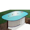 El modelo de piscina enterrada Moorea Ovalada dispone de 4 diferentes medidas: 500cm x 300cm, 600cm x 300cm, 700cm x 320cm y 800cm x 400cm. La altura de esta piscina es de 150cm en todos los tamaños disponibles de esta serie. Pertenece a la gama de piscinas de acero alargadas y enterradas Atolón de GRE. Debido a la posibilidad de elección del tamaño se adaptan muy bien a cualquier espacio exterior y/o jardín. Incorpora además todos los componentes necesarios para su uso y funcionamiento. También se le pueden acoplar de forma opcional cualquier complemento o periférico (clorador salino, regulador de pH, climatizador, limpiafondos, focos…)