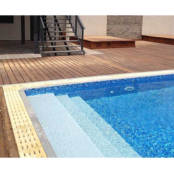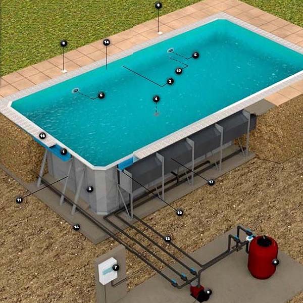 El principio establecido en las piscinas con rebosadero es que el agua de la misma desborda o rebosa por los laterales de todo el perímetro de la piscina. Se utiliza este perímetro como rebosadero. A fin de cuentas es un skimmer perimetral por donde se cuela o cae el agua de la piscina. Este tipo de piscinas pueden disponer de un sumidero o toma de fondo, la cual realiza la misma función que el rebosadero, llevar el agua hasta el sistema de filtración ( bomba depuradora y filtro de arena ) y crear un espacio de agua artificial estético emulando espacios naturales. Puede ver más modelos de piscinas prefabricadas, algunas con rebosadero, en nuestra tienda.