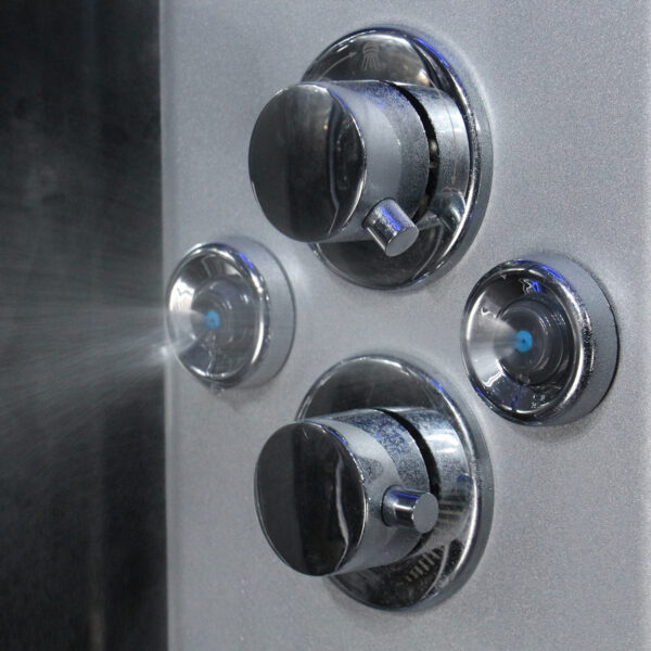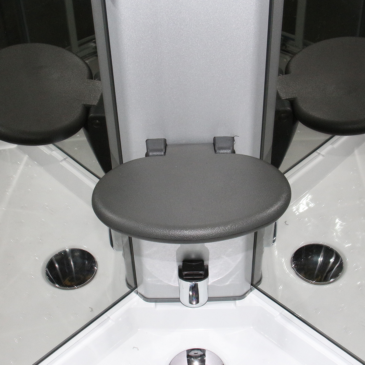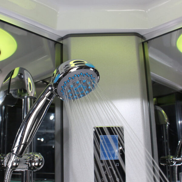 La cabina Insignia PRB-QBF-S de 800 mm forma parte de la segunda generación de duchas de hidromasaje vapor Insignia. El exclusivo diseño de la bandeja de Insignia LeakFree, que cambia en la industria, le brinda tranquilidad cuando se trata de fugas de agua. El agua simplemente se redirige hacia atrás a través de los canales, de modo que no es necesario aplicar silicona en la bandeja. Este concepto revolucionario hará que los dolores de cabeza sobre un techo con goteras sean cosa del pasado. Con las tres características de agua habituales, esta cabina de ducha lo tiene todo cubierto para todas sus necesidades de ducha. Una ducha abovedada, una ducha de mano multifunción en un riel elevador fácil de usar y un grupo de 6 chorros de hidromasaje le ofrece variedad para cualquier estado de ánimo. Además, está el panel de control Bluetooth, que le permite escuchar su propia música desde el sistema de altavoces gemelos integrado en la ducha.