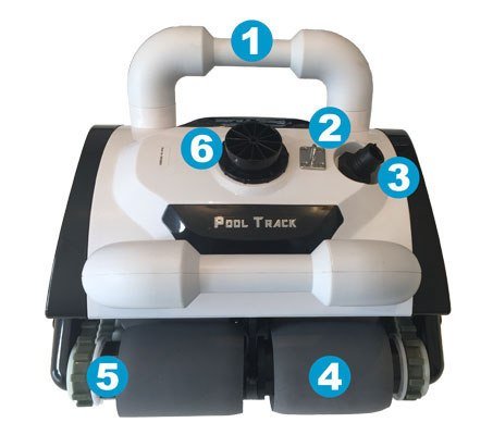 Robusto y eficaz, con un equipamiento óptimo, pertenece a la gama de limpiafondos eléctricos de gama premium. Limpia eficazmente el fondo, las paredes y la linea de flotación en piscinas de hasta 20 metros X 20 metros. Es fácil de trasladar gracias a su carrito de transporte y sus enganches de acero inoxidable, lo que permite sacarlo del agua con el cable. El robot eléctrico Pool Track Feedom viene equipado con 2 motores de tracción y 1 motor de aspiración de alto rendimiento, lo que le permite franquear todos los obstáculos como escaleras, safety ledge, etc.. Sus cepillos de PVC de alta resistencia le permiten agarrase a todos tipo de revestimientos, incluidos los mas resbaladizos. El agarre y la ascensión en  vertical son espectaculares debido a la propulsión del agua de la bomba y a su fuerza de impulsión perpendicular.