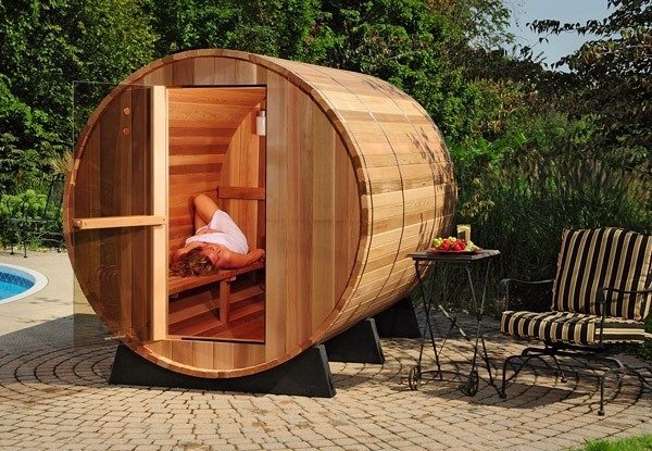La saunas de barril se fabrican con madera de Cedro Rojo de 4cm de clase A, lo que establece un ambiente y una olor mas natural.