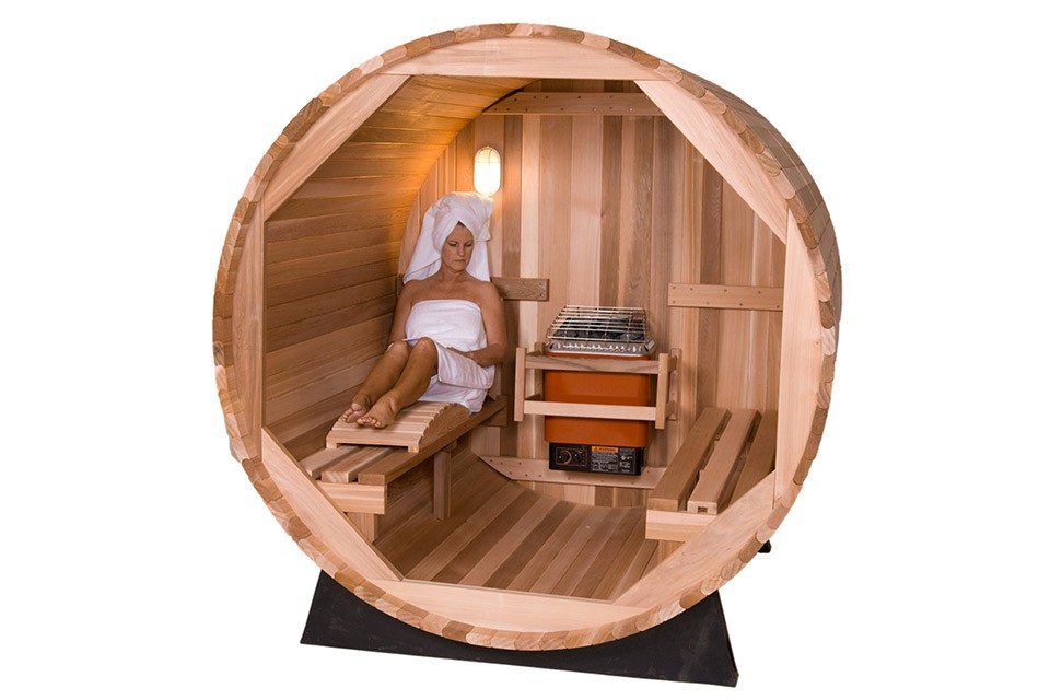 La saunas de barril se fabrican con madera de Cedro Rojo de 4cm de clase A, lo que establece un ambiente y una olor mas natural.