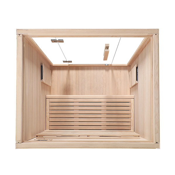 Sauna de diseño innovador gracias a su frontal acristalado, estética y adaptable a casi cualquier espacio interior del hogar.