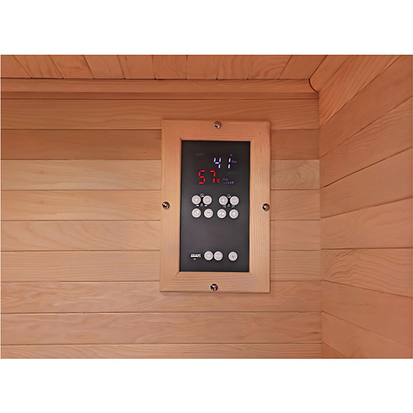 Display de control en el interior / Mejora con respecto a otros modelos del mercado que obligaban a salir de la sauna para hacer cualquier cambio o ajuste ( ideal para poder manejar parámetros y música sin tener que salir de la sauna en cualquier momento de la sesión )