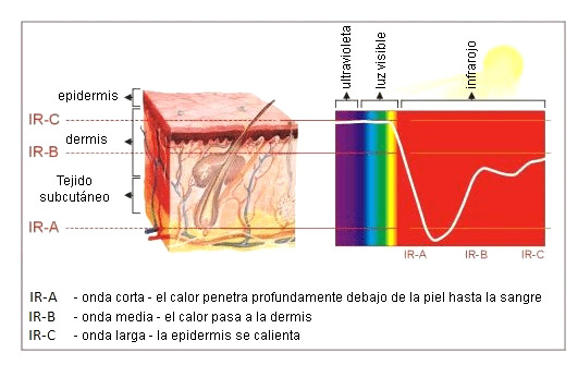 Transmisión del calor infrarrojo en los diferentes niveles de la dermis para un calor más profundo y una sesión más completa