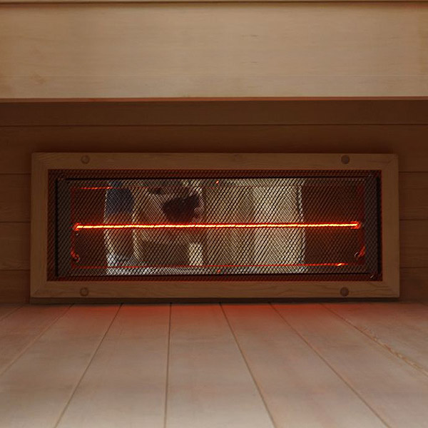 Los transmisores de espectro completo de halógeno (“onda corta”) de la sauna Ruby 1 Interline Full Spectrum cubren como su nombre indica, el espectro completo de radiación infrarroja. Incluyen el 27% de onda corta (IR-A), 58% de onda media (IR-B) y 15% de infrarrojos largos (IR-C). Dada la mayor temperatura del transmisor, basada en la tecnología halógena, se trata de calor en profundidad. La profundidad de penetración en la piel es para este transmisor de 4 a 5 mm.