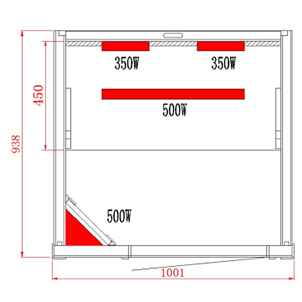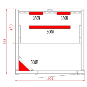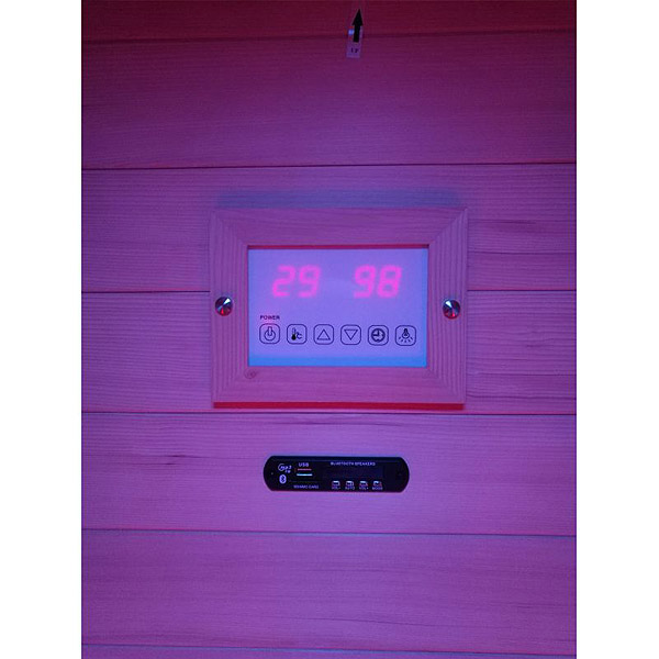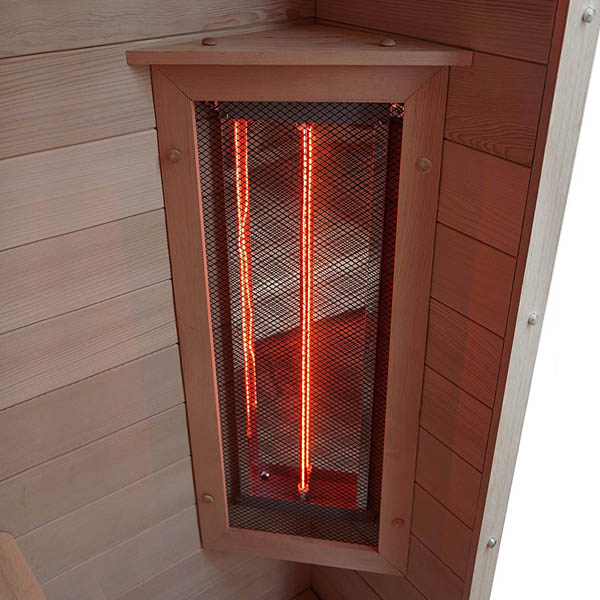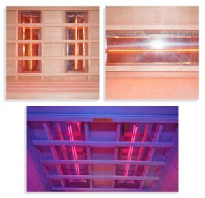 La capacidad total de la sauna Ruby 1 de Interline Full Spectrum es de 1700 vatios, distribuida en toda la cabina.
