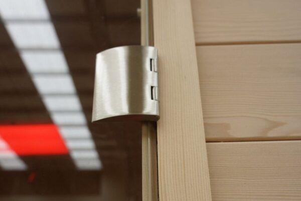 La sauna Ruby 1 Interline Full Spectrum está fabricada en madera Hemlock canadiense. Esta madera de fuertes coníferos y estable proviene del norte de Canadá y se caracteriza por disponer de una estructura fina y sin nudos. Este tipo de madera es particularmente adecuada para su uso en cabinas de infrarrojos al garantizar una dispersión uniforme del calor.