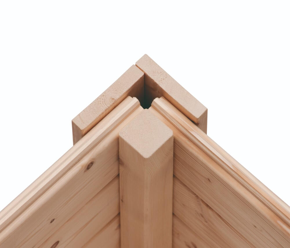 Las paredes de la sauna exterior Hygge están construidas de madera maciza de 38mm de grosor con doble ranura machihembrada para el montaje fácil y una estabilidad máxima en el tiempo. Viuene equipada con 3 ventanas de cristal.