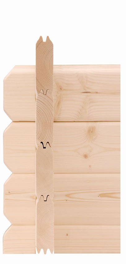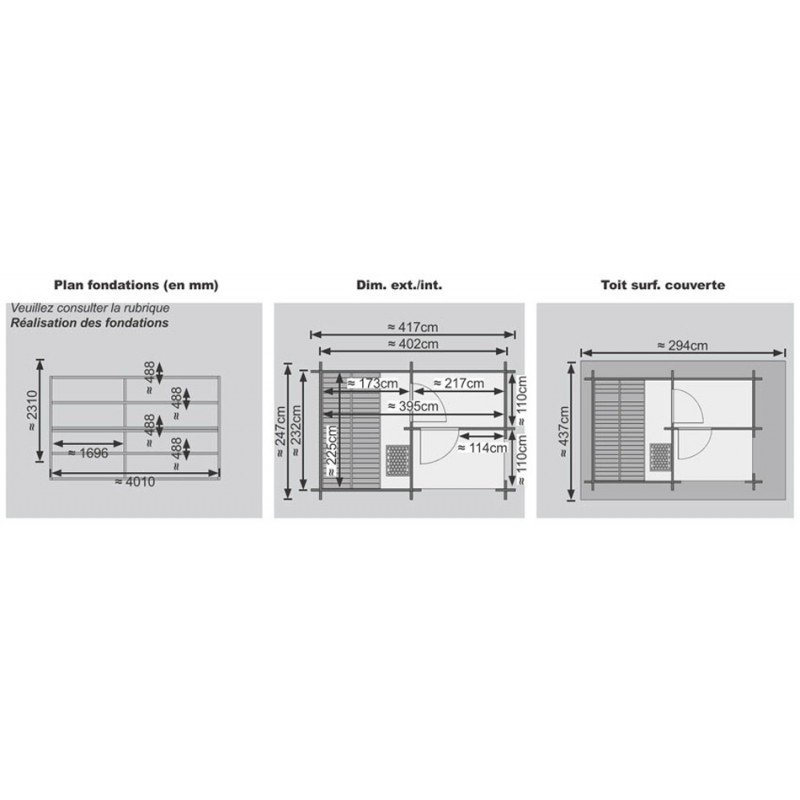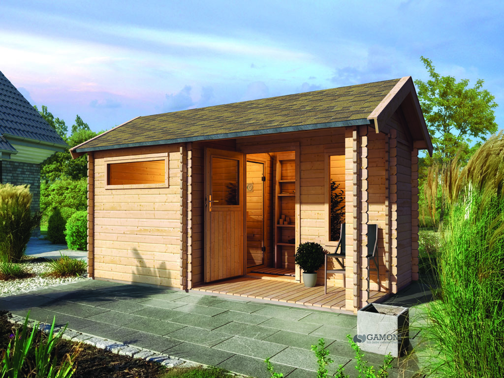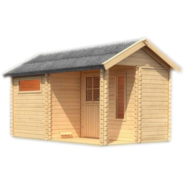Las paredes de la sauna Finlandesa Chalet 4 están construidas de madera maciza de 38mm de grosor con doble ranura machihembrada para el montaje fácil y una estabilidad máxima en el tiempo. El techo de la sauna esta aislado de una capa de lana mineral de 42mm y un acabado interior de madera maciza de 12,5mm. La techumbre de la sauna Finlandesa Chalet 4 se compone de laminas de madera maciza de 19mm con ranuras machihembradas. La cubierta del techo es de fieltro asfáltico y de shingles (tejas adhesivas) en 7 colores y/o dibujos a elegir para una estanqueidad perfecta.