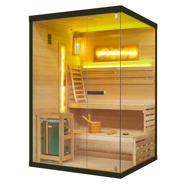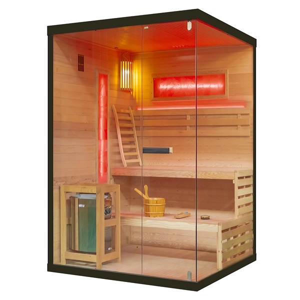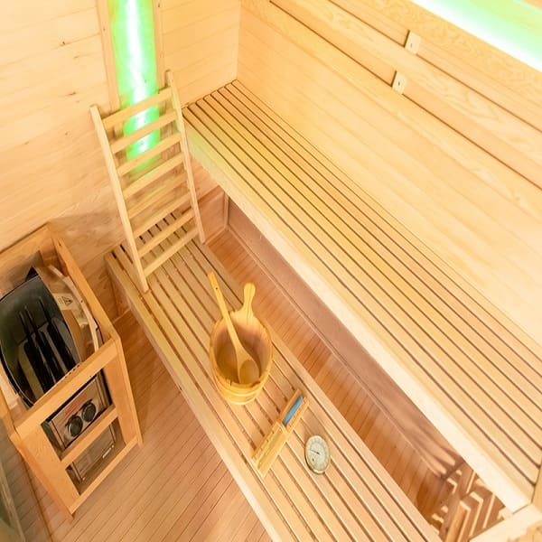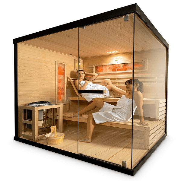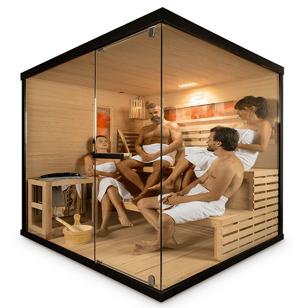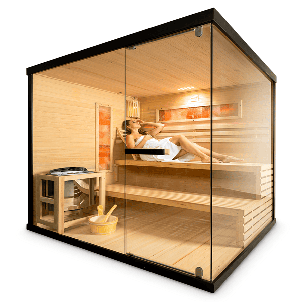 La Sauna Finlandesa Palo para 4 personas es ideal para disfrutar de una sesión privada de sauna tradicional en familia o con amigos. La fantástica apariencia estética modernista con materiales de primera calidad como la madera de epicea Canadiense Hemlock con larga vida útil, sus grandes cristaleras y paneles de sal crean un espacio agradable y aireado.