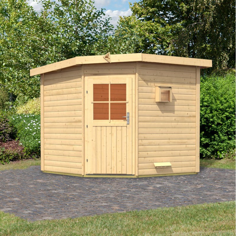 La sauna Finlandesa Pekka se realiza con madera maciza,la cual absorbe el vapor y disminuye el indice de humedad en su interior. Los madreros de epicea nórdica tienen un grosor de 38mm y se ensamblan perfectamente gracias a su doble ranura de machihembrado. La madera es bruta y requiere un tratamiento para garantizar un uso de larga duración.
