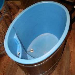 Sauna piscina de inmersión 110 x 77 de alerce flameado / interior transparente/ exterior flameado