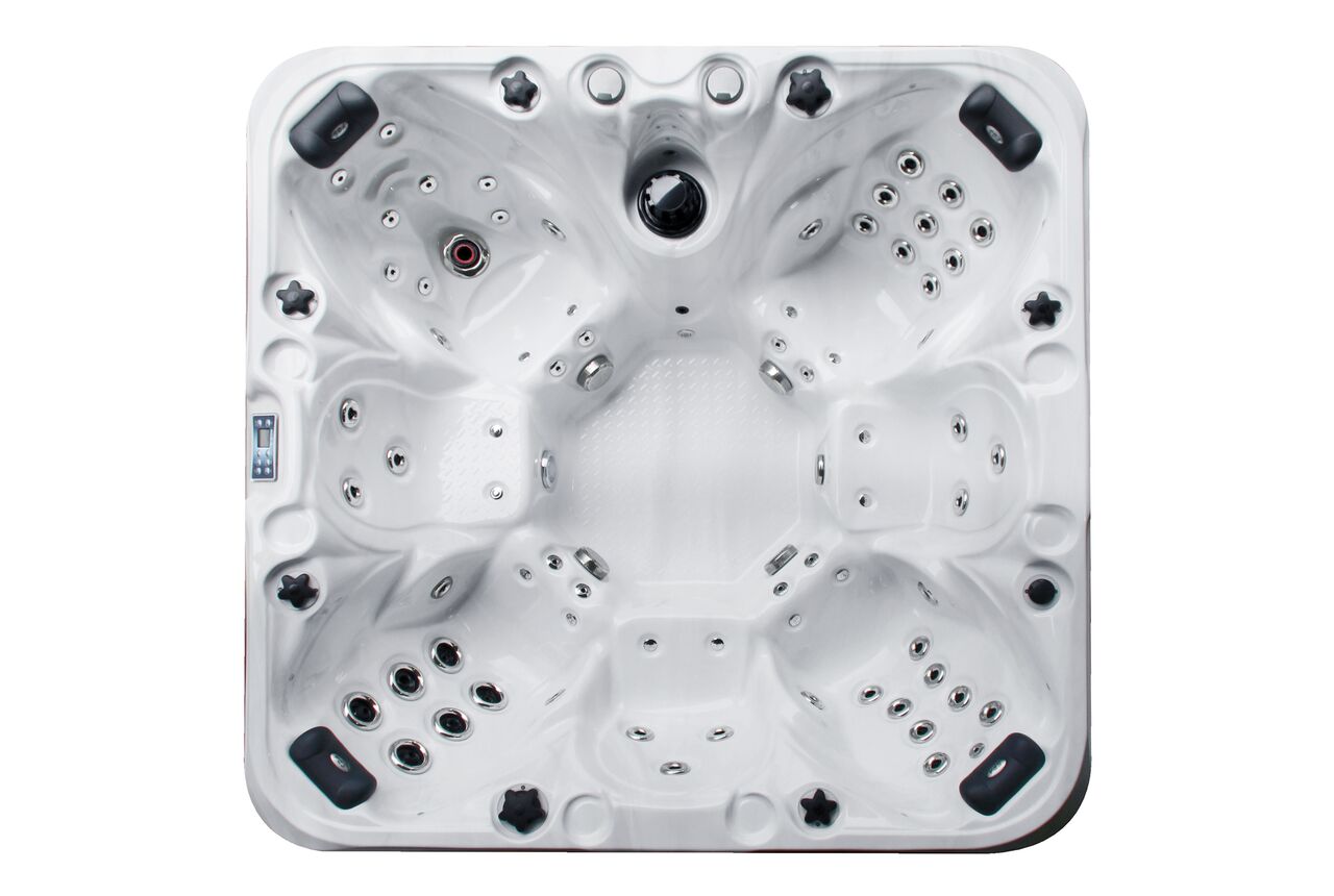 asientos de banco estándar separan los asientos de cubo para un total de asientos para siete personas. Joy incluye Aqua Rolling Massage™, así como el sistema de control totalmente programable que se encuentra en todos los balnearios.