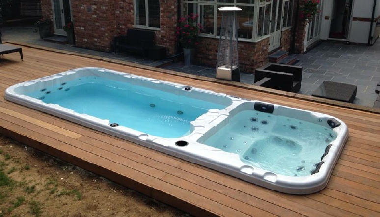 spa contiguo con amplios asientos para cinco personas. El swimspa Aquatic-Eco 3 está disponible