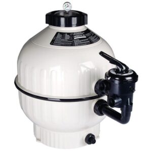 El filtro de arena, también llamado filtro depuradora o depuradora de arena, es un sistema que elimina las partículas de suciedad presentes en el agua. Funciona haciendo pasar el agua por un depósito lleno de arena de sílice, cristal filtrante o bolas de algodón, reteniendo los residuos antes de devolver el agua limpia a la piscina a través del impulsor.