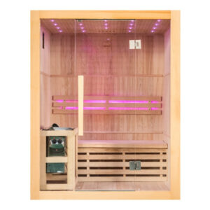 Ademas son evolutivas, es decir, que le permite al particular adaptar este espacio y dotarlo de accesorios y personalizarla a su gusto. Como consecuencia, el diseño y la belleza hacen de estas saunas un espacio idílico y especial para su usuario. Estas saunas finlandesas , están ideadas para todo tipo de usuarios. Disponemos desde saunas de 2 plazas hasta de las más grandes y versátiles con plazas tumbadas y bancos de doble altura.